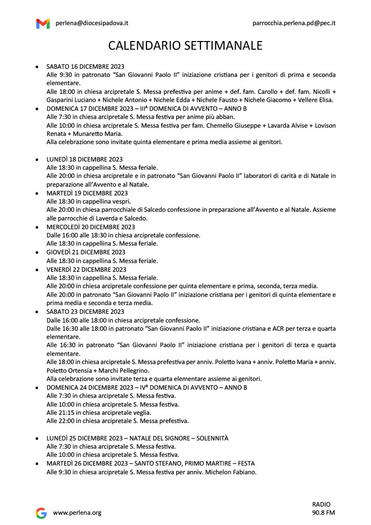 BOLLETTINO PARROCCHIALE 25/2023 17 Dicembre 2023 2023, Bollettino Parrocchiale https://drive.google.com/file/d/1pZs4aRf4YKCRKOXgYIkoTv-i_dInargH/view?usp=sharing