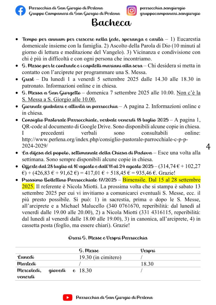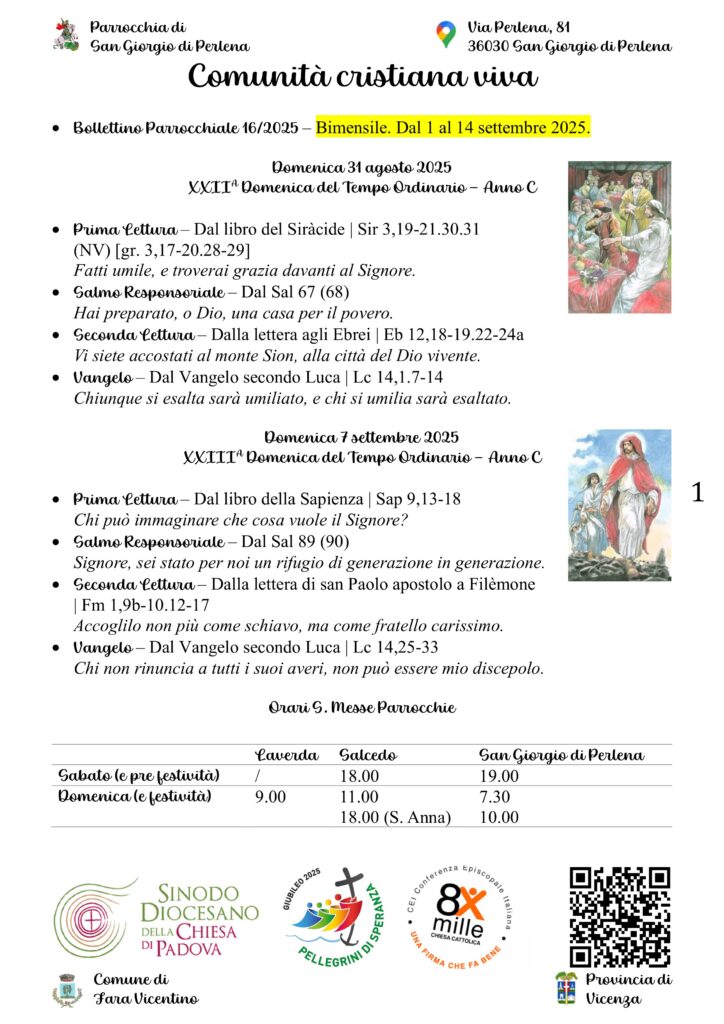 BOLLETTINO PARROCCHIALE 16/2025 30 Agosto 2025 2025, Bollettino Parrocchiale https://drive.google.com/file/d/1So36TVH7rZ3oXjYvP1znTzliN3Kooa6Q/view?usp=sharing