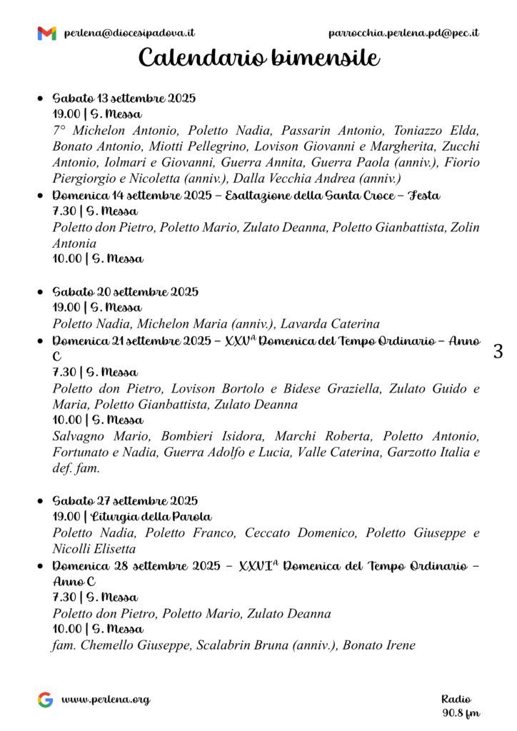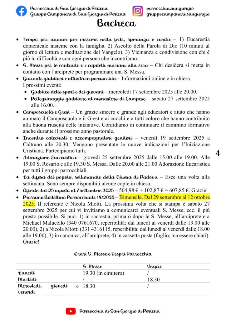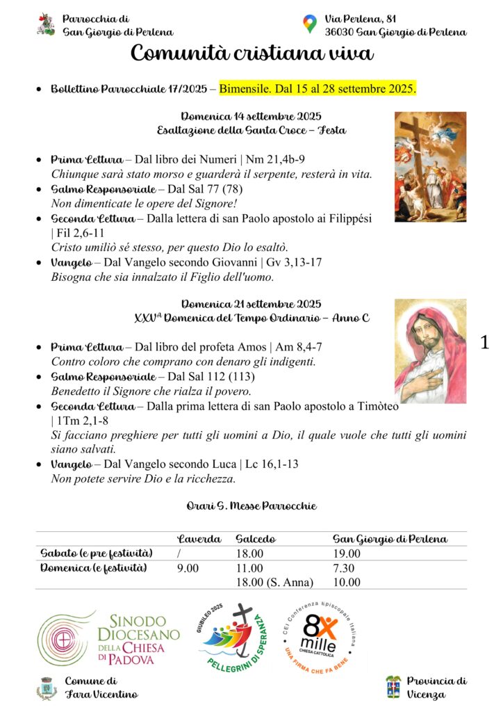 BOLLETTINO PARROCCHIALE 17/2025 13 Settembre 2025 2025, Bollettino Parrocchiale https://drive.google.com/file/d/1U0XHtQw5nkEE0FFf-F9blD7mdR5kWOw9/view?usp=sharing